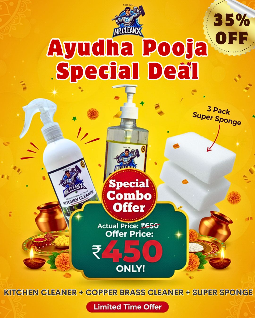 Celebrate the festive season with a sparkling home! Our Pooja Special Offer Pack includes everything you need to make your kitchen and utensils shine: