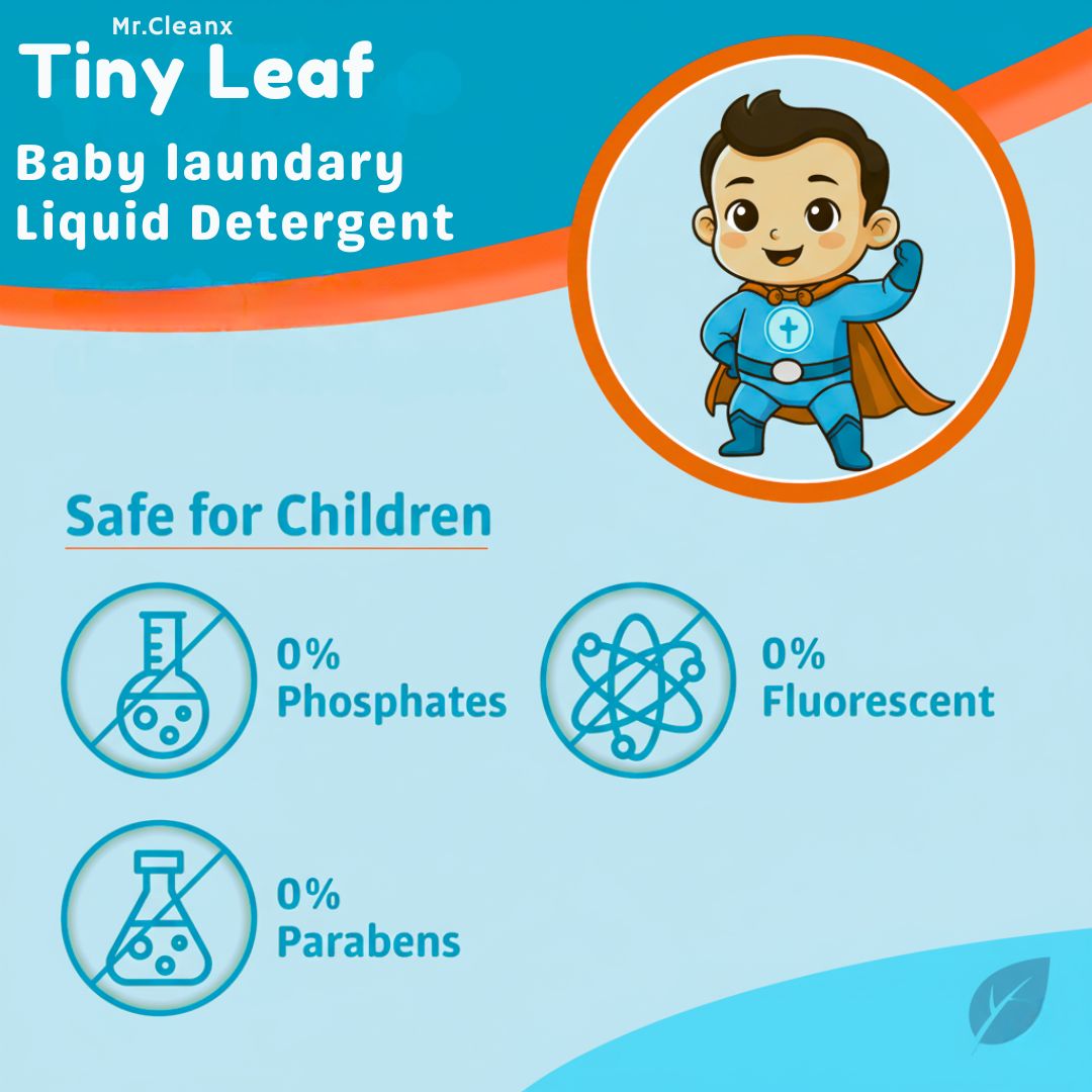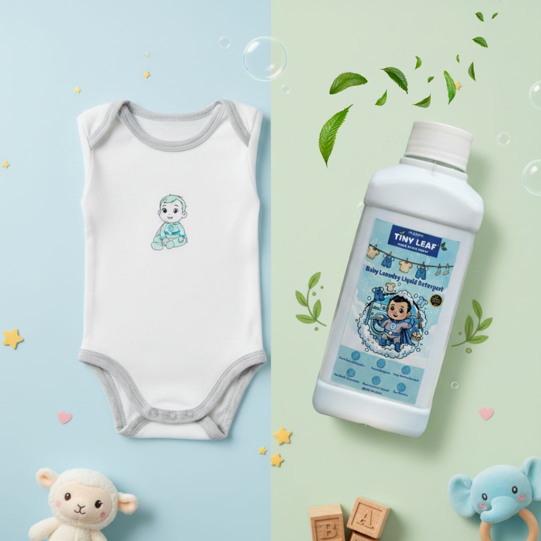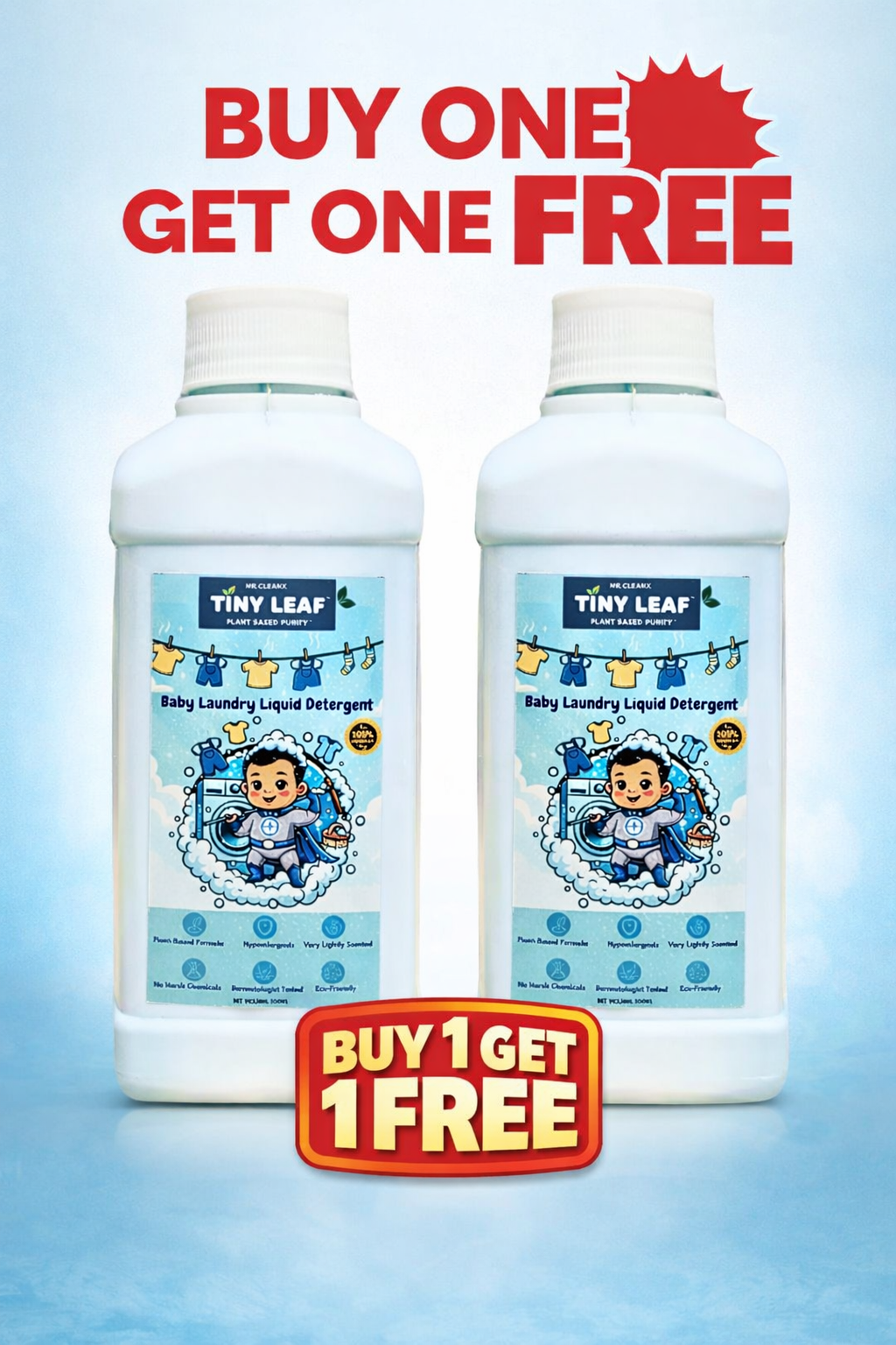 Give your baby the safest and gentlest laundry care with Tiny Leaf Baby Laundry Liquid Detergent, one of the best baby detergents in India for newborns, infants, and toddlers. Specially formulated with a plant-based, hypoallergenic formula, this baby washing liquid effectively removes milk stains, food spills, diaper leaks, and everyday messes while being soft on delicate baby skin.